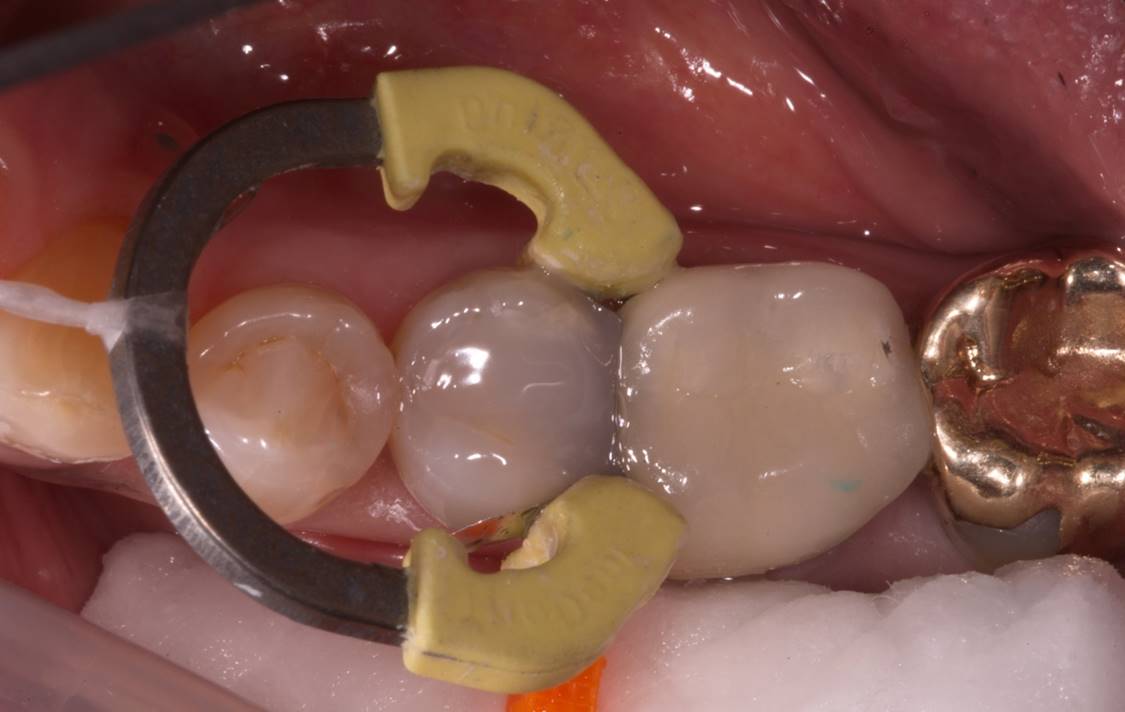 To help maintain marginal integrity and prevent microleakage, a low-stress composite adaptation is required at this most vulnerable area, and every attempt should be made to ensure minimal shrinkage stress.2,8 Additionally, particularly for Class II restorations, creating tight contacts is essential and requires well-adapted materials that are tightly and sufficiently packed to ensure good contacts and an ideal emergence angle.2,7 Contacts should be broad throughout the range of tooth structure because it touches the opposing tooth.