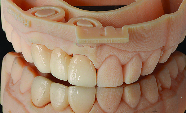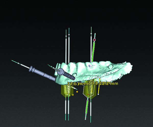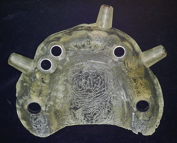 (12) An example of a surgical guide produced using digital design and digital planning of implant position using the double scan protocol.