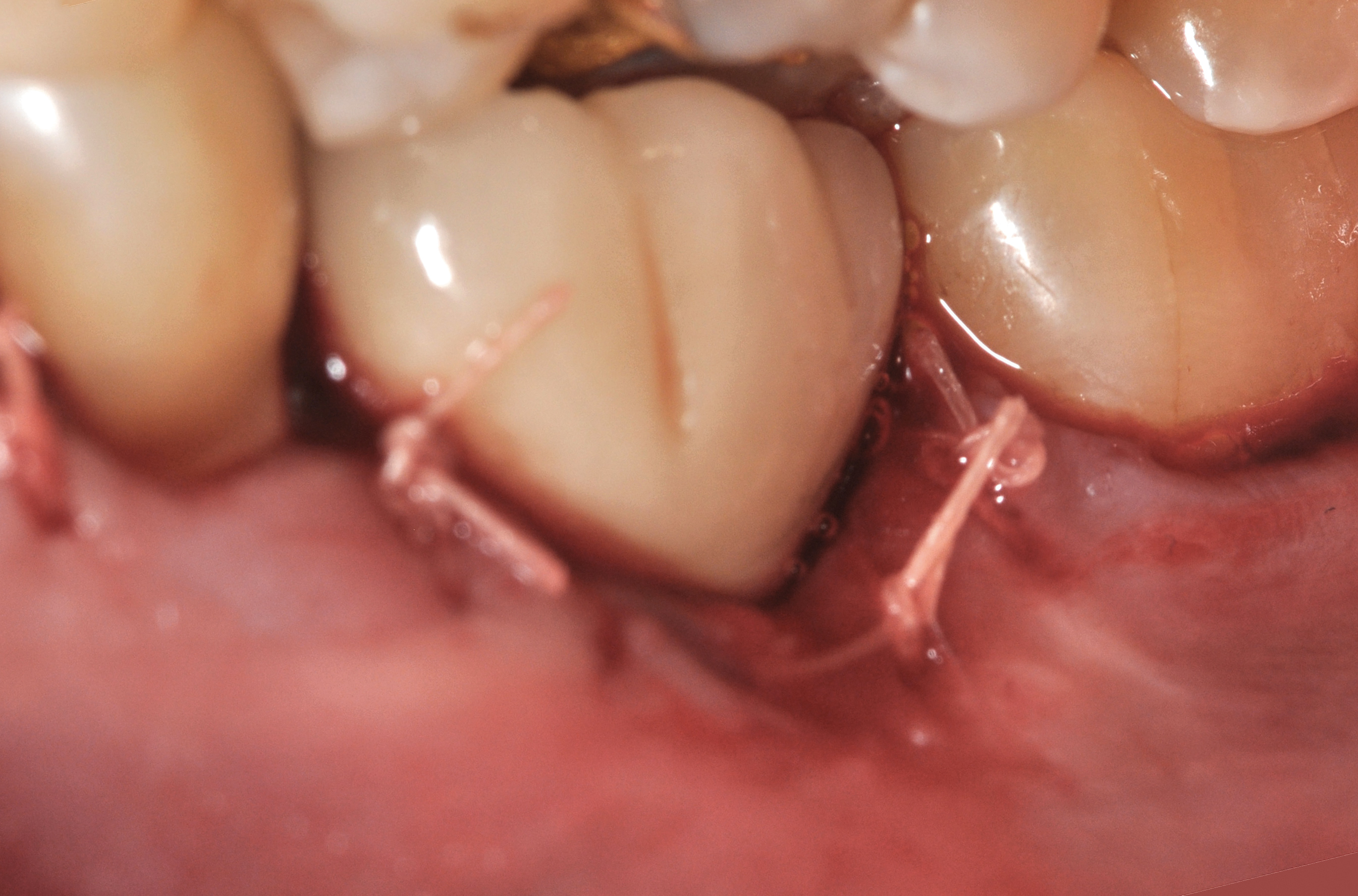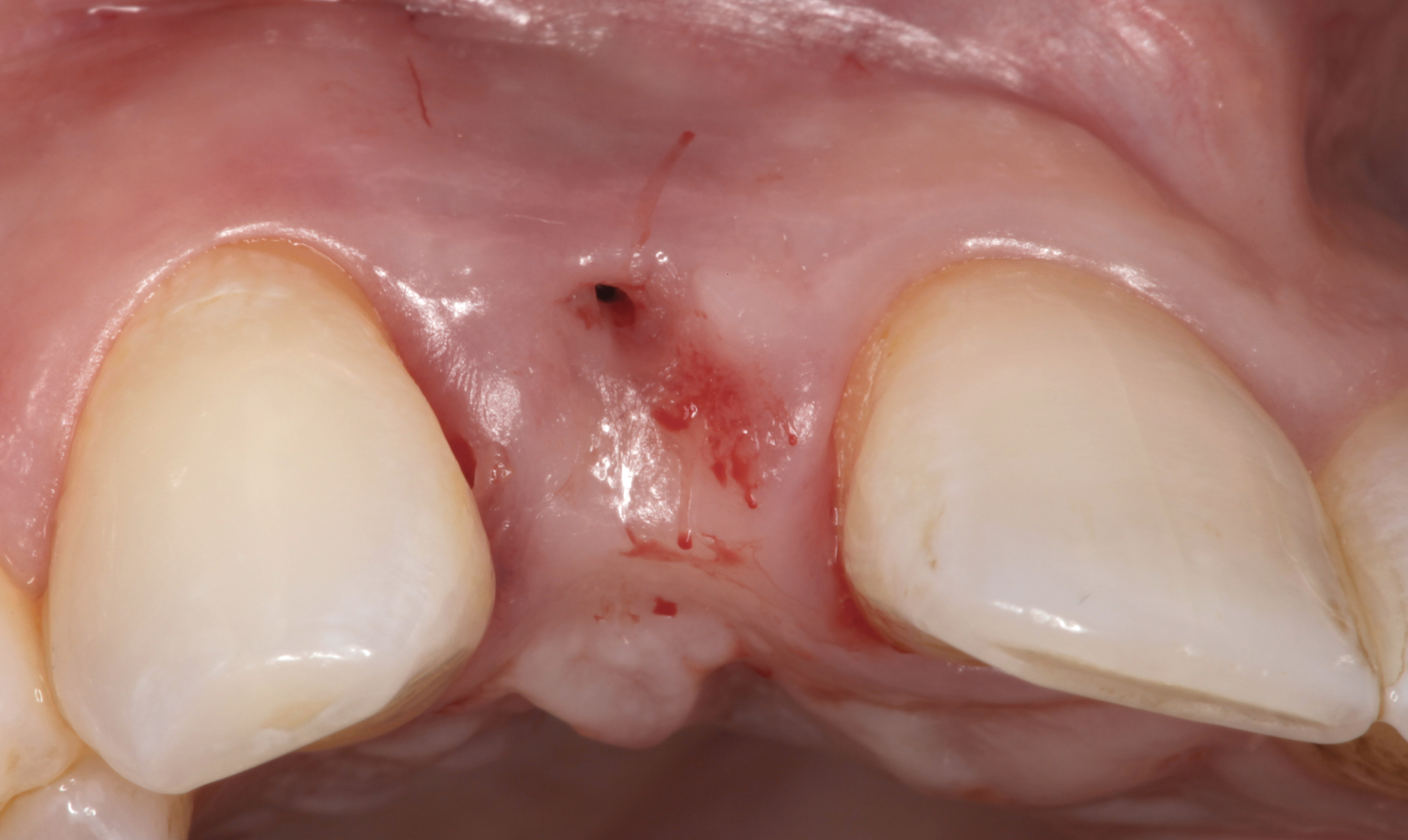 The rationale for not grafting at the time of implant removal is biologic. Frequently, there is a minimal zone of keratinized attached gingiva around a poorly positioned implant. Allowing the soft tissues to heal and mature in situ (ie, nature’s connective tissue graft) will eliminate the need to coronally reposition the flap, thereby leaving the mucogingival junction in its original position.