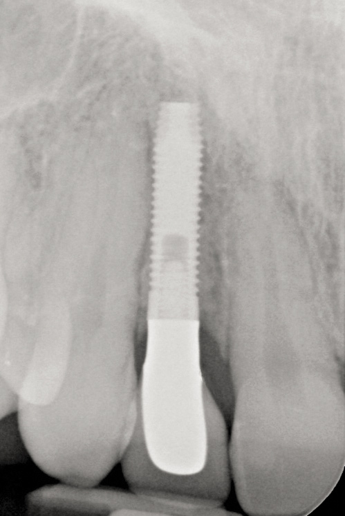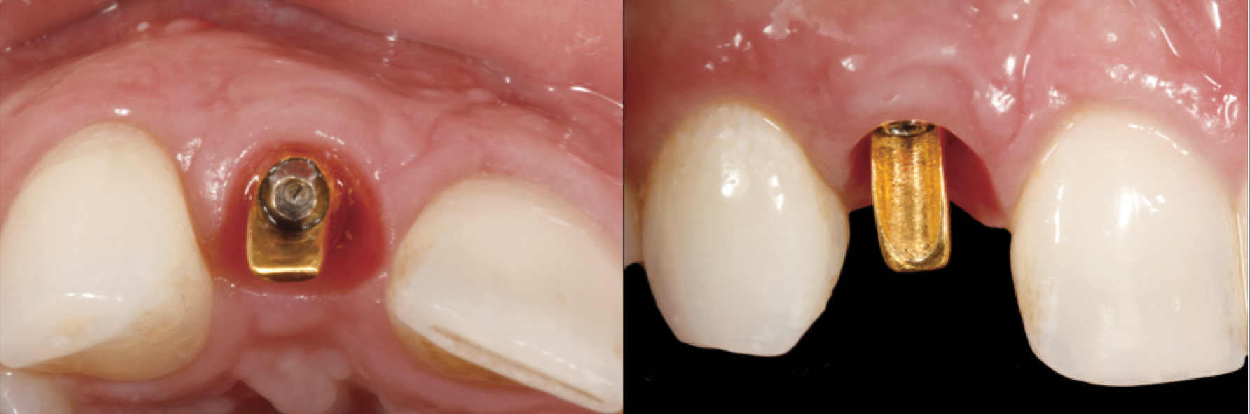 Solution: Using a reverse-torque device on high, remove the implant with minimal trauma to the surrounding periodontium. Let the area heal like an extraction socket and place a new implant in the proper position 8 to 10 weeks later. Restore the implant, which will now be in a better restorative and esthetic position, with either a screw- or cement-retained crown.