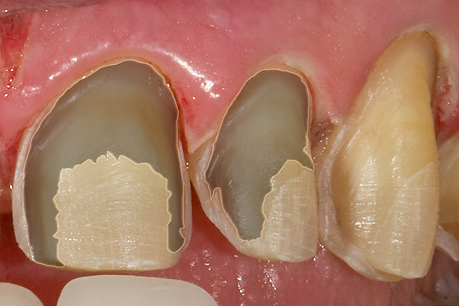 Because 50% or more enamel on the tooth is required, 50% or more of the bonded substrate is on the enamel, and 70% or more of the margin must be enamel. The condition or integrity of the substrate to which veneers will be bonded is also important for success.6,9,35 Absolute isolation during cementation procedures is essential for bond maintenance, which ultimately protects the internal restoration surface and is necessary for longevity.9,35