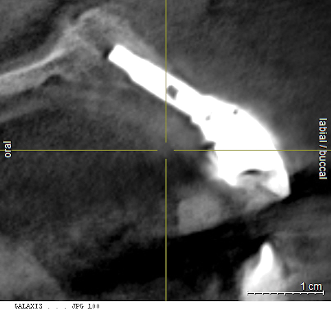 When implants are not placed in ideal 3-dimensional positions, hard- and soft-tissue remodeling often leads to abutment and/or thread exposure and esthetic failures (Figure 11 and Figure 12).3,4 When this occurs and implants are present "outside the bony envelope," it may be more predictable to remove these implants, augment the sites with hard and/or soft tissues, and replace the fixtures in more favorable positions. Under these circumstances, removing the intact implants without any surrounding bone is preferred. This can be achieved with reverse torque instrumentation. In a study evaluating palatal implants used for orthodontic anchorage, Kuhn and colleagues demonstrated that there are fewer complications associated with the reverse torque instrumentation method when compared with the older, trephine drill method.5
