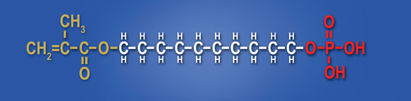All of the universal adhesives listed in Table 1 use phosphate esters (R-O-PO3H2) as their primary adhesive functional monomer. In fact, phosphate esters form the backbone of virtually all current universal adhesive systems and enable them to do much of what they do. These monomers have many positive attributes, including the potential to bond chemically to metals,18 zirconia,19 and to tooth tissues through the formation of non-soluble Ca++ salts.11,12 In addition, their acidic nature (they are esters of phosphoric acid) gives them the potential to etch and demineralize tooth tissues, which makes them good candidates for use in adhesives that require self-, selective-, and total-etching options.