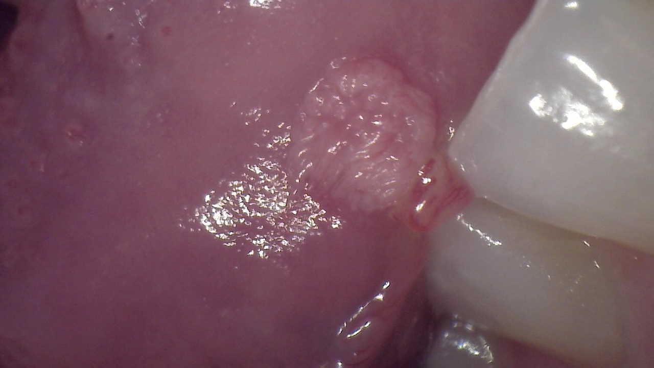 HPV lesions that manifest themselves in the mouth or on the skin do not present major consequences. Although there are many subtypes noted for HPV lesions, the most common lesions that are present in the oral cavity are of the low-risk subtypes which do not become carcinogenic.2 The squamous papilloma is the most common, followed by verruca vulgaris, multifocal epithelial hyperplasia, and condyloma acuminatum (Figure 2 through Figure 5).10