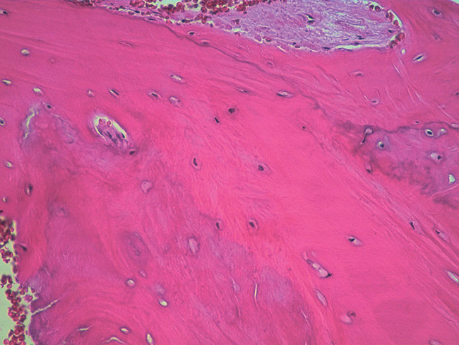 Figure 16  Trabeculation, new vascularity, and osteocytes evident in the histologic specimen.