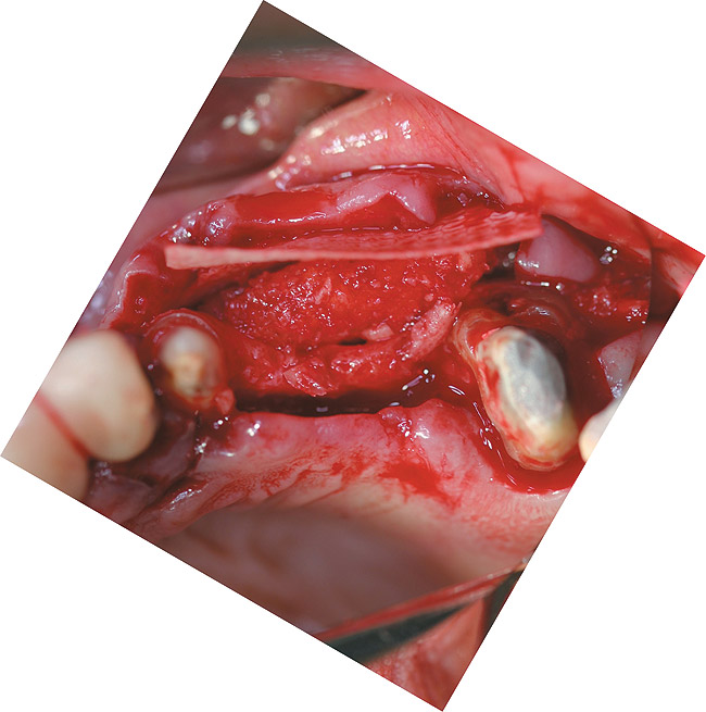Figure 14  Ossix Plus resorbable membrane in position over the putty.