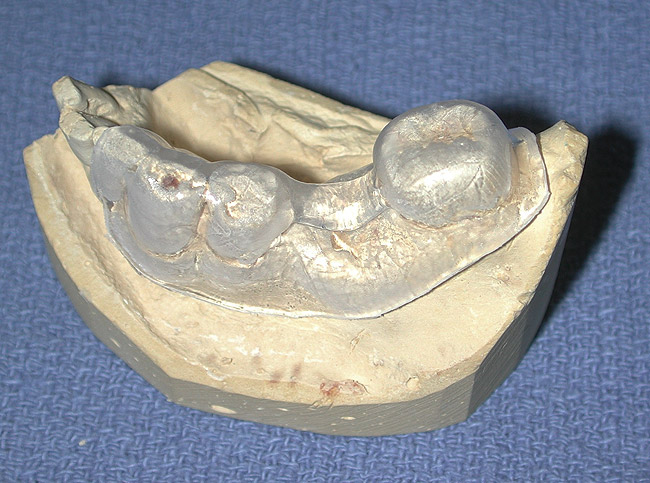 An alginate impression was taken bedside. The impression was poured in dental stone, and the cast was trimmed in the hospital dental laboratory. A 0.060-inch vacuum formed splint was fabricated (Figure 1). Cellulose dressing (Surgicel®, ETHICON, Inc., www.ethicon.com) was folded into a square and placed directly on the socket. The vacuum-formed splint was placed over the extraction site to apply pressure and to secure desired position (Figure 2). Hemostasis was achieved, and the splint was kept in place for 2 days. On removal, bleeding ceased, and the patient was subsequently discharged.